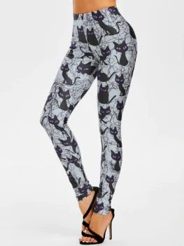 Halloween Pumpkin Cat Skull Print Dress with Fishnet Cape