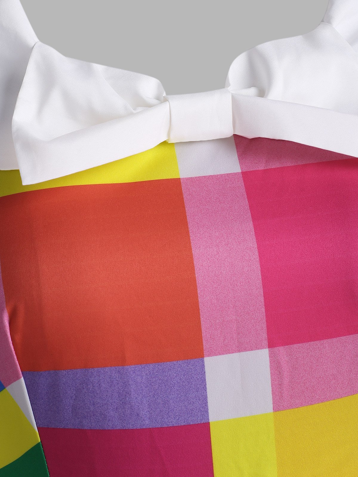 Bowknot Collar Colorful Plaid Plus Size Vintage Dress