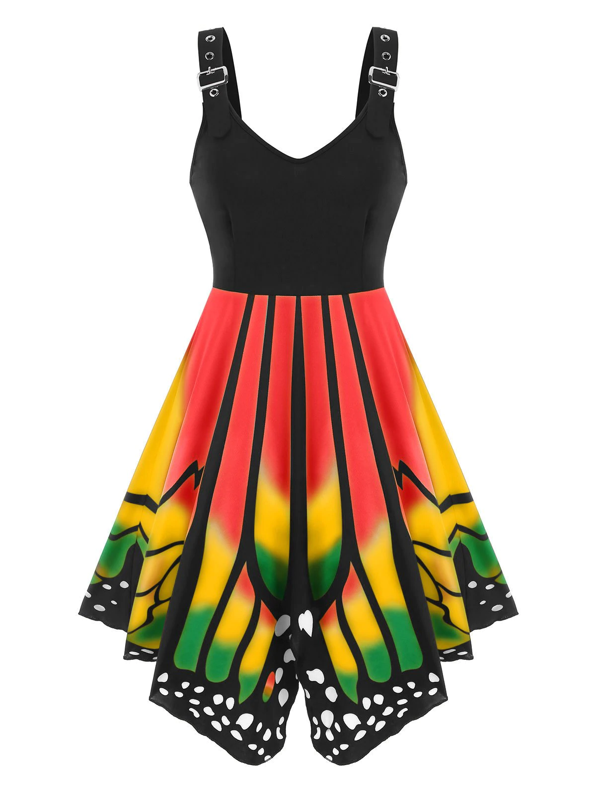 Buckled Lace-up Butterfly Print Dress