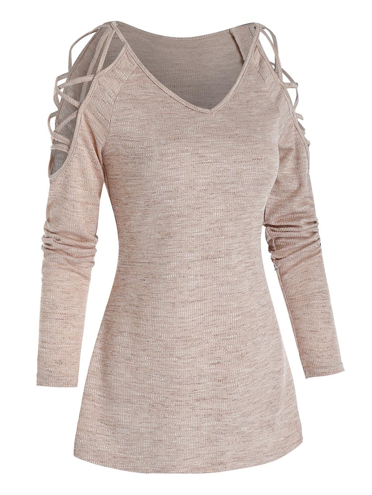 Cold Shoulder Criss-cross Ribbed T-shirt