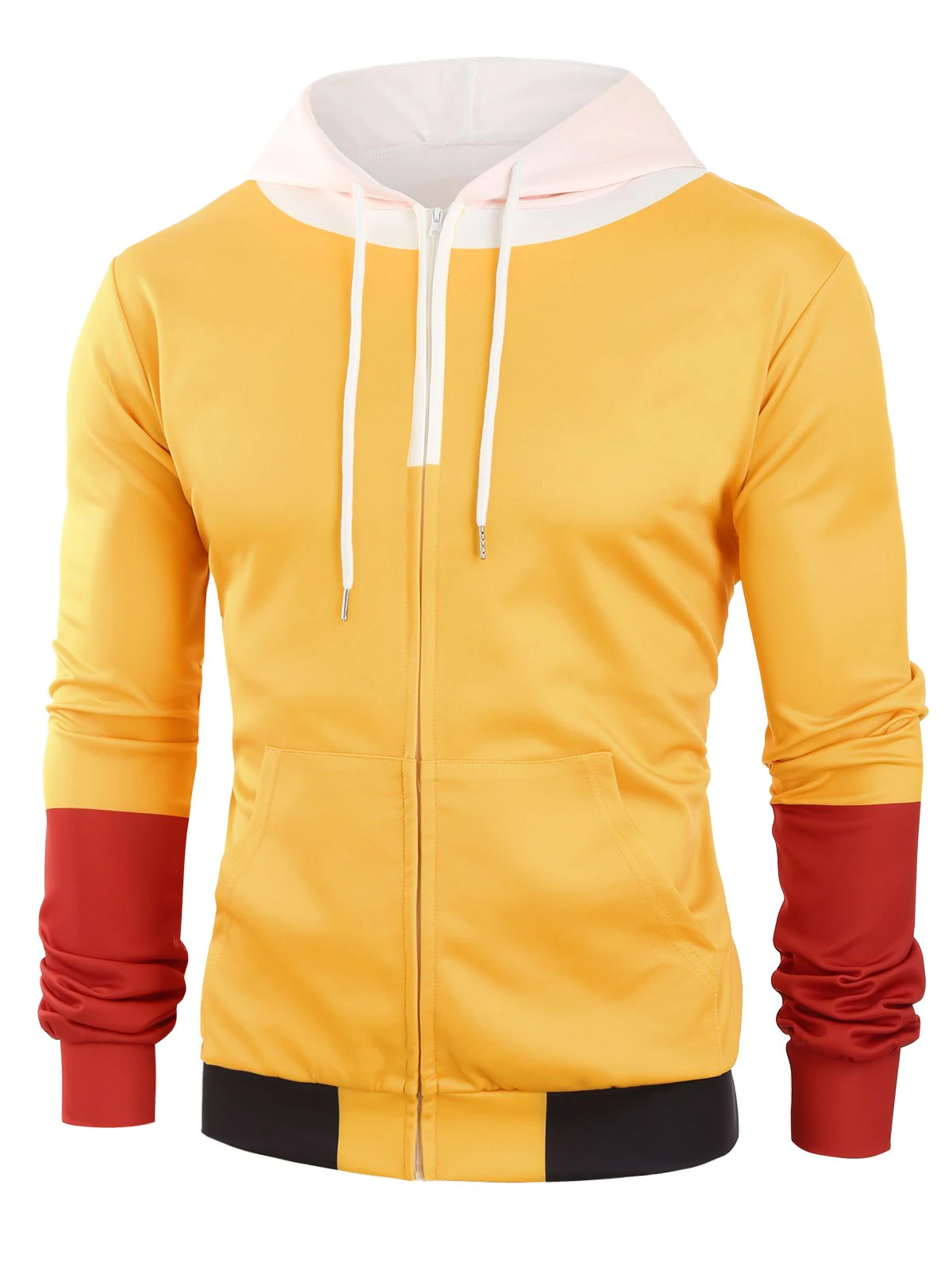 Color Block Zip Up Front Pocket Hoodie