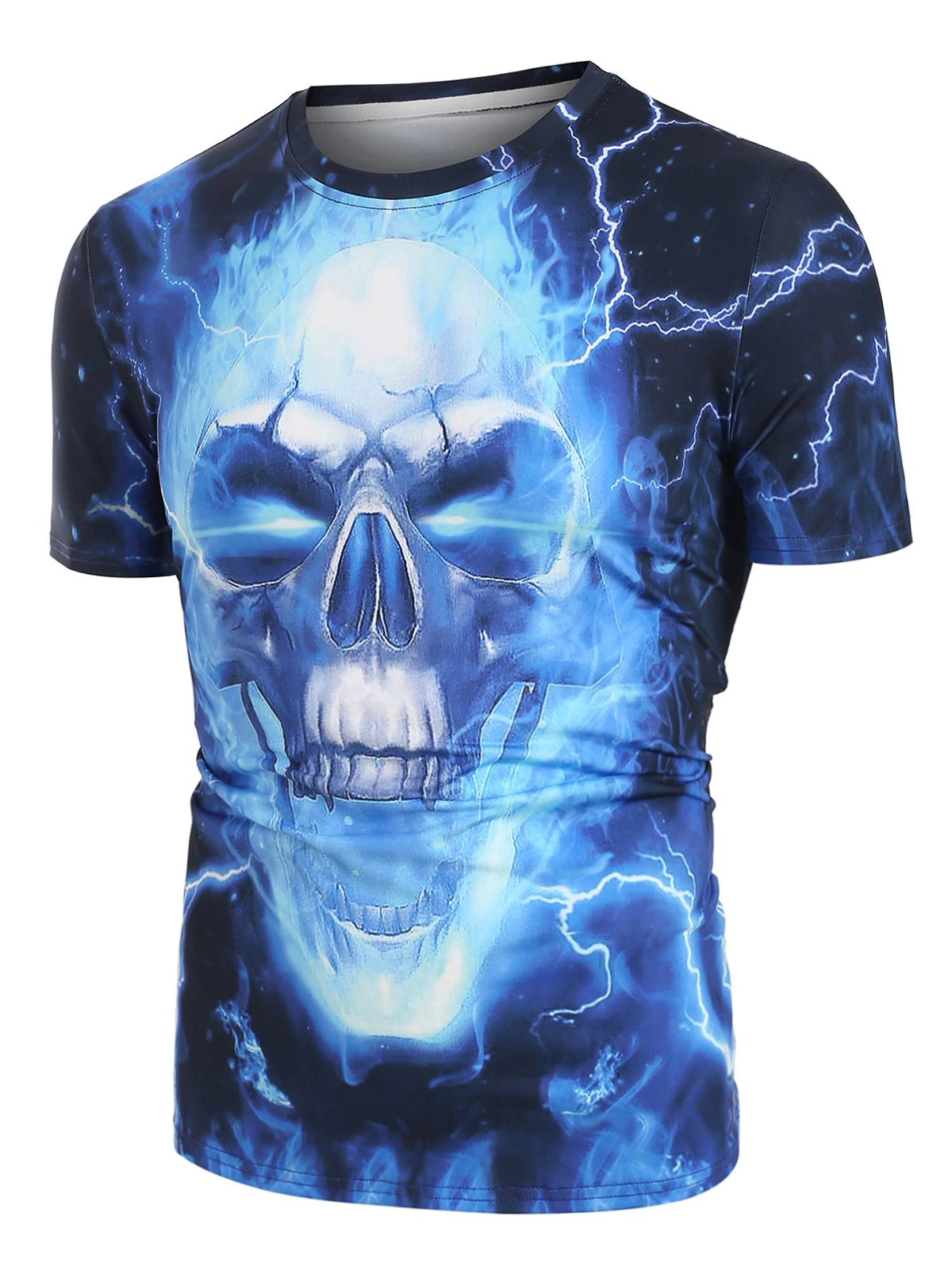 The flattering 3D lightning skull print decorating this t-shirt makes it unique from others, and add some appeal and attention to it, upgrading your casual styling. It features classic round neck and short sleeves, perfectly teamed with any pants and shorts.