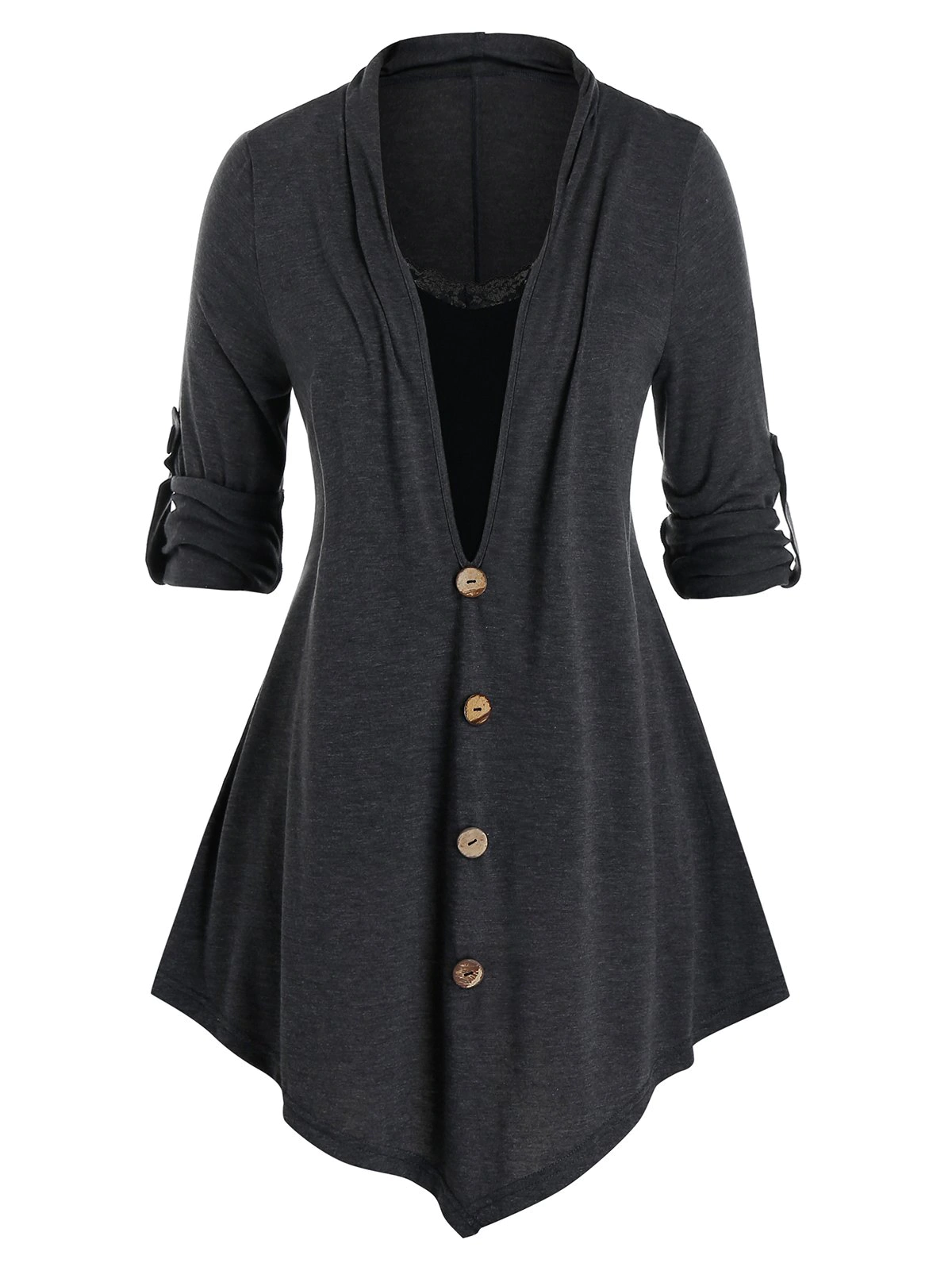 Plus Size Lace Panel Roll Up Sleeve Tunic Tee
