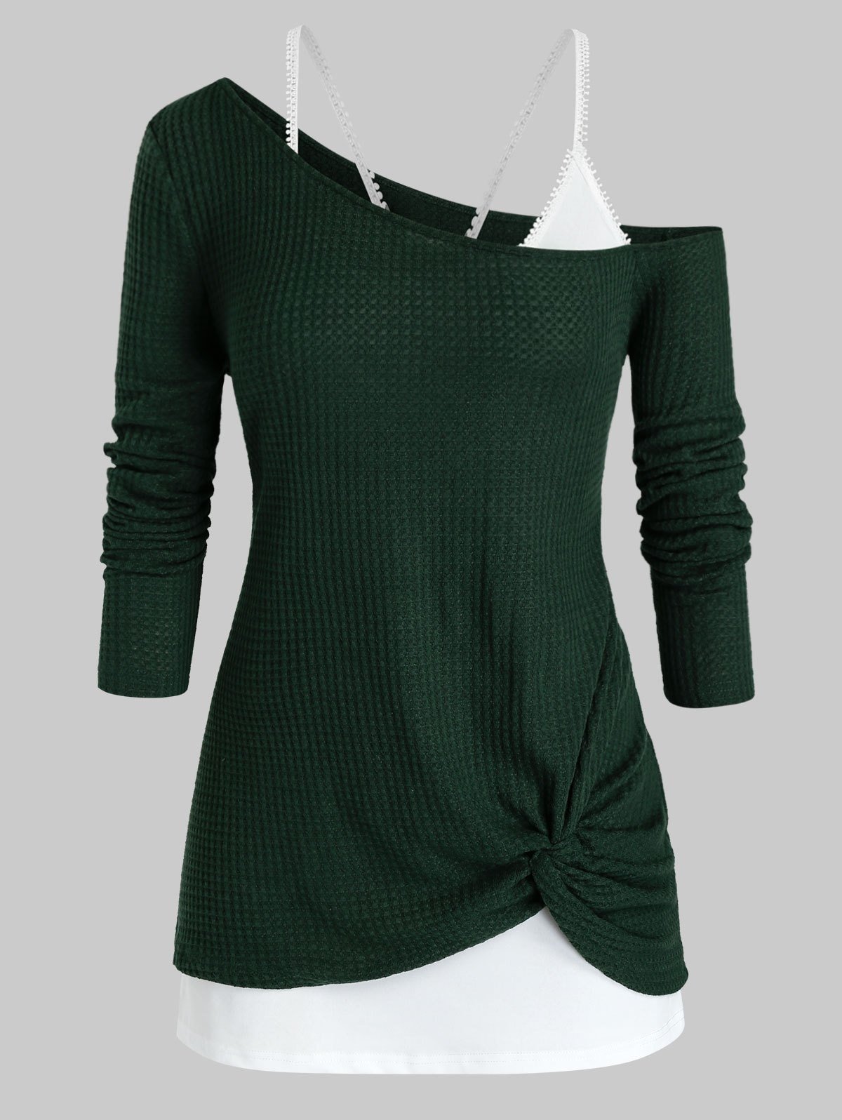 Plus Size Skew Neck Twist Knitwear and Tank Top Set