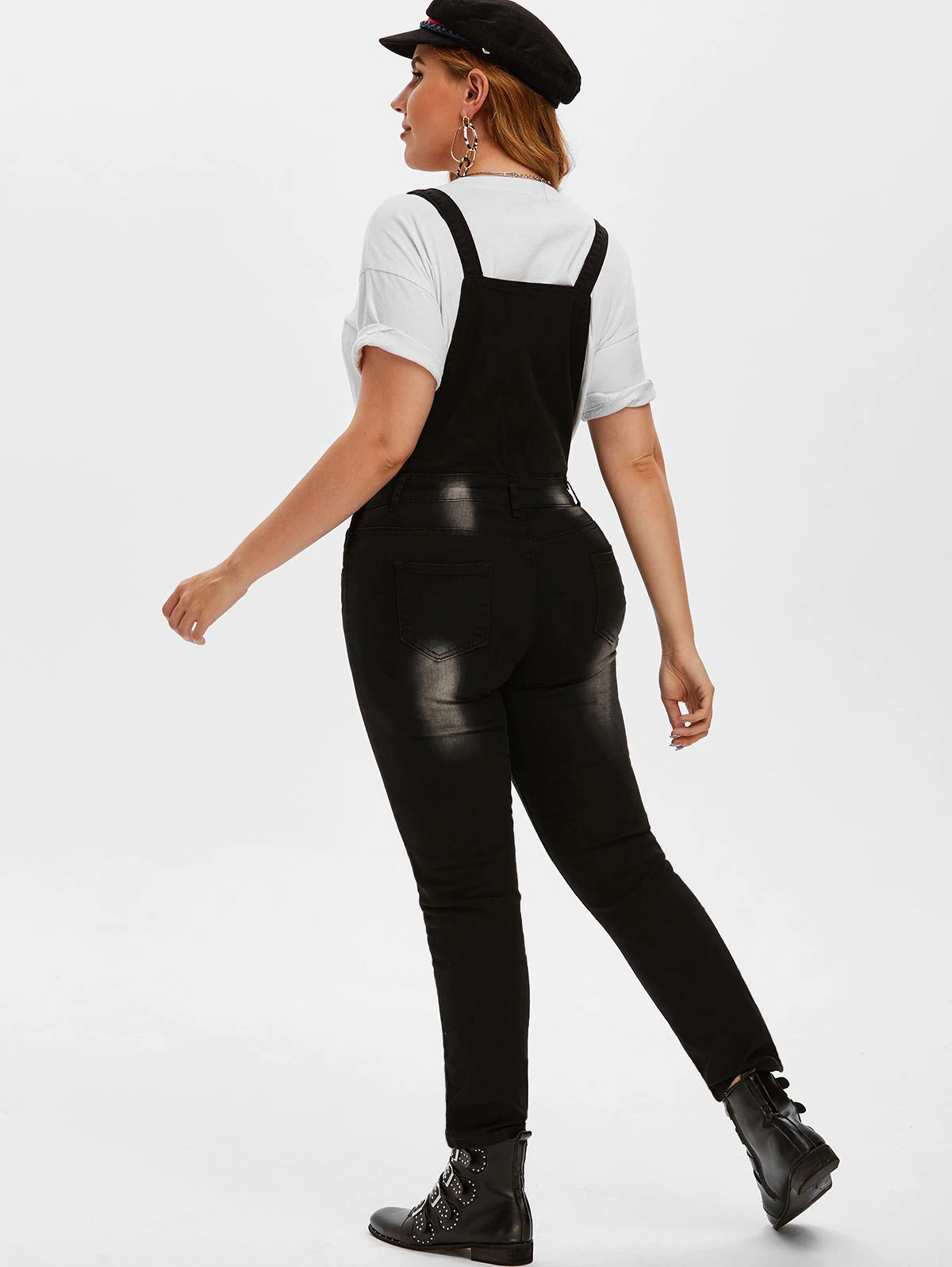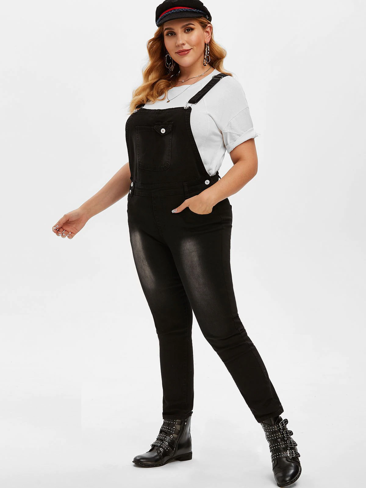 Plus Size Stone Wash Pocket Skinny Dungarees