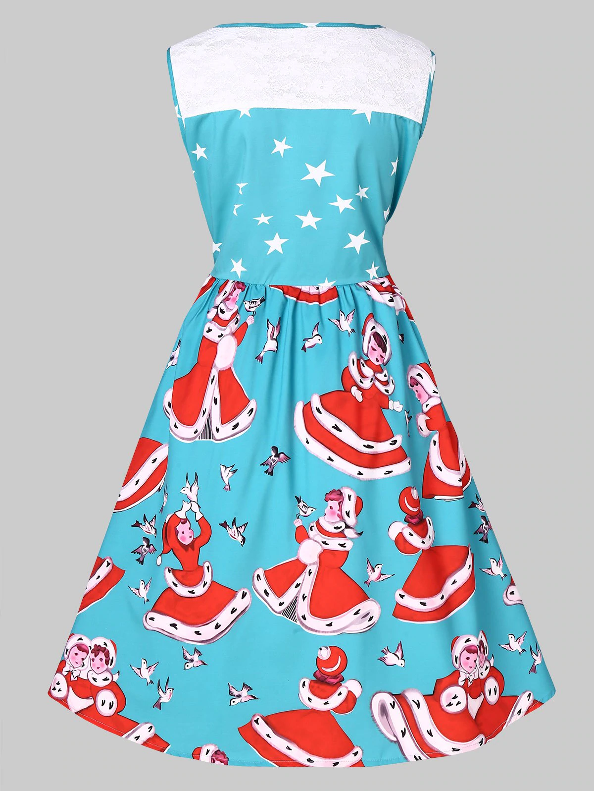 Plus Size Vintage Lace Panel Christmas Printed Dress
