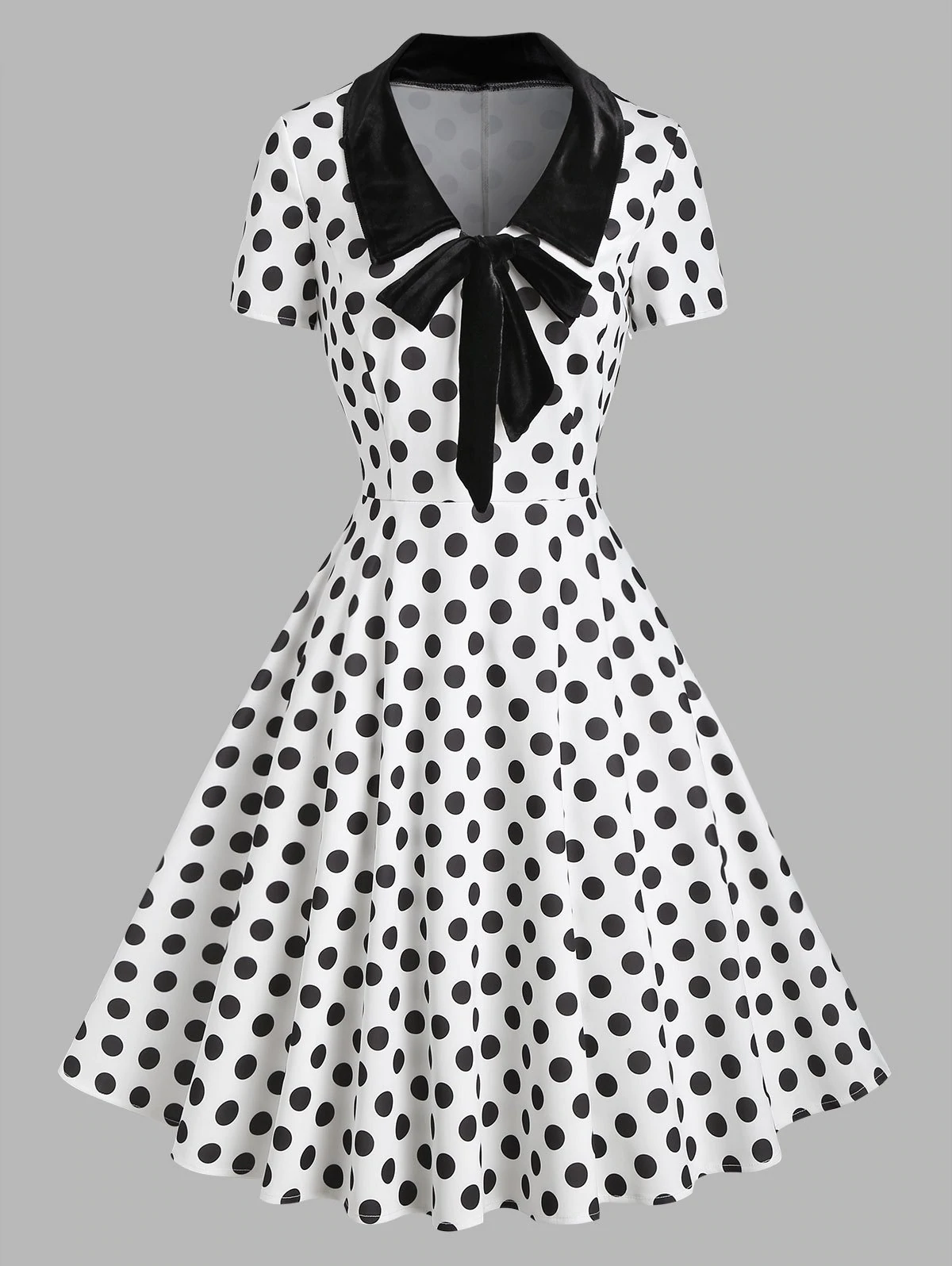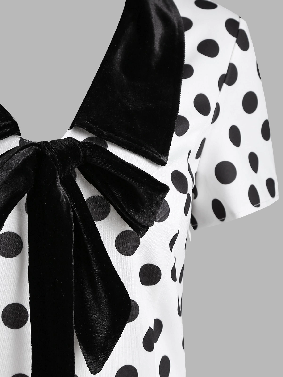 Polka Dot Velvet Insert Bowknot Vintage Dress