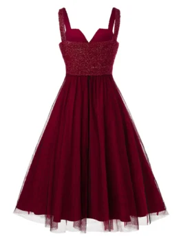 Style: Vintage Material: Polyester Silhouette: A-Line Dresses Length: Mid-Calf Neckline: Spaghetti Strap Sleeve Length: Sleeveless Embellishment: Criss-Cross Pattern Type: Santa Claus With Belt: No Season: Fall,Spring,Summer Weight: 0.2700kg Package Contents: 1 x Dress