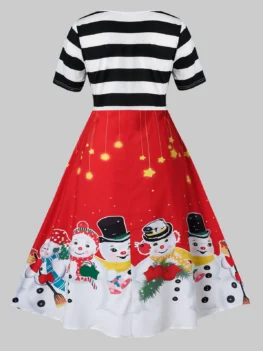 Style: Vintage Material: Polyester,Polyurethane Silhouette: A-Line Dresses Length: Mid-Calf Neckline: V-Neck Sleeve Length: Short Sleeves Pattern Type: Santa Claus,Snowflake,Striped With Belt: No Season: Fall,Spring,Summer Weight: 0.3500kg Package Contents: 1 x Dress