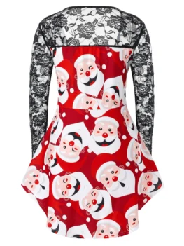 • Plus Size Santa Claus Printed Lace Panel T-Shirt