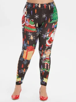 • Plus Size Christmas Snowflake Santa Claus and Tree Print Legging