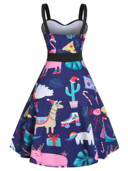 • Christmas Animal Printed High Waist Sweetheart Neck Dress