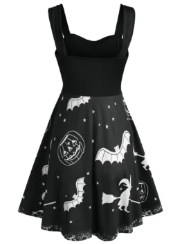 Style: Casual Occasion: Halloween Material: Polyester,Spandex Silhouette: A-Line Dresses Length: Mid-Calf Neckline: Straps Sleeve Length: Sleeveless Waist: Empire Embellishment: Lace up Pattern Type: Animal,Plaid,Pumpkin With Belt: No Season: Fall,Spring,Summer Weight: 0.2300kg Package Contents: 1 x Dress