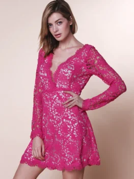 Style: Casual Occasion: Day,Semi Formal Material: Polyester Silhouette: A-Line Dresses Length: Mini Neckline: V-Neck Sleeve Length: Long Sleeves Embellishment: Lace Pattern Type: Solid With Belt: No Season: Fall,Spring Weight: 0.2200kg Package Contents: 1 x Dress