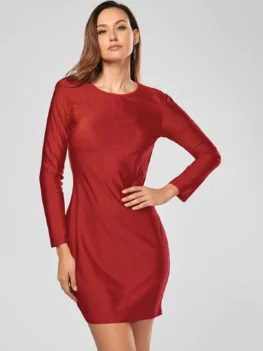 Scoop Collar Solid Color Backless Long Sleeves Women’s Bodycon D