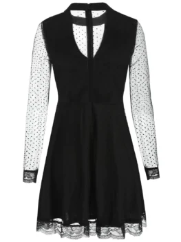 • Sexy Lace Up See Through Lace and Mesh Babydoll Dress