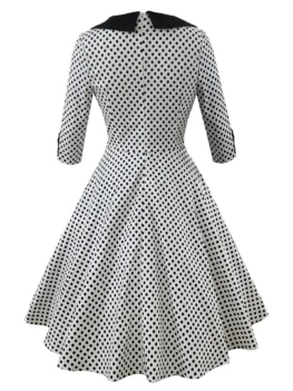 Style: Vintage Occasion: Day,Homecoming Material: Cotton,Spandex Silhouette: A-Line Dresses Length: Knee-Length Neckline: Plunging Neck Sleeve Length: 3/4 Length Sleeves Waist: High Waisted Embellishment: Button Pattern Type: Polka Dot With Belt: No Season: Fall,Spring Weight: 0.3850kg Package Contents: 1 x Dress