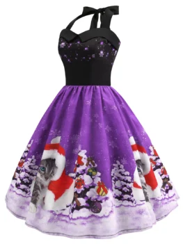 Printed with moon and branch pattern that is suitable for the Halloween night, this dress adorns with crisscross straps that create a chic keyhole design. And the rivet accent helps to highlight your slim waist, as well as offering a figure-flattering high waist illusion. Style: Casual Occasion: Casual ,Halloween Material: Polyester,Polyurethane Silhouette: A-Line Dresses Length: Knee-Length Neckline: Keyhole Neck Sleeve Length: Sleeveless…
