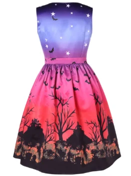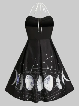 Style: Vintage Material: Polyester Silhouette: A-Line Dresses Length: Knee-Length Neckline: Halter Sleeve Length: Sleeveless Embellishment: Backless Pattern Type: Moon,Star With Belt: No Season: Fall,Spring,Summer Weight: 0.2200kg Package Contents: 1 x Dress