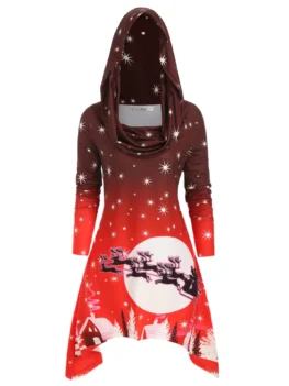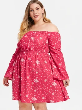 • Plus Size Off The Shoulder Foldover Printed Christmas Dress