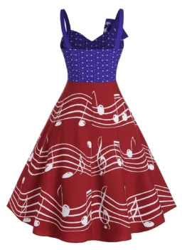 Style: Vintage Material: Polyester,Polyurethane Silhouette: A-Line Dresses Length: Mid-Calf Neckline: Sweetheart Neck Sleeve Length: Sleeveless Embellishment: Twist Pattern Type: American Flag,Musical,Star With Belt: No Season: Summer Weight: 0.3300kg Package Contents: 1 x Dress