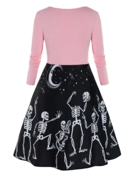 Style: Vintage Material: Polyester Silhouette: A-Line Dresses Length: Knee-Length Neckline: Plunging Neck Sleeve Length: Long Sleeves Waist: High Waisted Embellishment: Ruched Pattern Type: Moon,Skeleton,Star With Belt: No Season: Fall,Spring Weight: 0.3100kg Package Contents: 1 x Dress