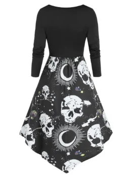 Plus Size Crossover Skeleton Moon and Star Long Sleeve Dress