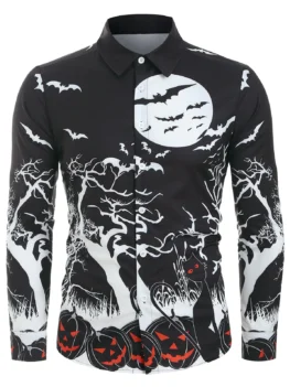 Shirts Type: Casual Shirts Occasions: Casual,Festival Sleeve Length: Full Collar: Turn-down Collar Fit Type: Regular Material: Polyester Pattern: Animal,Moon,Pumpkin Season: Fall,Spring Weight: 0.2700kg Package Contents: 1 x Shirt