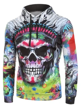Indian Skull Graphic Casual Front Pocket Hoodie
