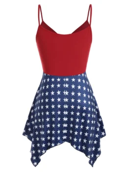 $22.990 out of 5Show off your patriotic spirit this summer season by sporting this lightweight tank top with a colorful American flag print and a flowy handkerchief hem. Material: Polyester,Polyurethane Shirt Length: Regular Sleeve Length: Sleeveless Collar: Spaghetti Strap Style: Fashion Season: Summer Pattern Type: American Flag Weight: 0.2200kg Package Contents: 1 x Tank Top