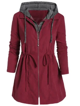 • Plus Size Zipper Fly Hooded Space Dye Coat
