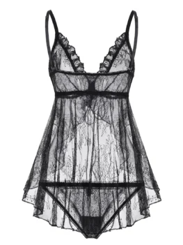 Materials: Cotton,Polyester Bra Style: Unlined Cup Shape: Three Quarters(3/4 Cup) Support Type: Wire Free Strap Type: Adjusted-straps Closure Style: None Pattern Type: Solid Embellishment: Lace Style: Sexy Weight: 0.1800kg Package Contents: 1 x Babydoll 1 x G-string