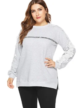 Material: Polyester,Polyurethane Shirt Length: Regular Sleeve Length: Full Style: Fashion Pattern Style: Patchwork Embellishment: Lace Season: Fall,Winter Weight: 0.4000kg Package Contents: 1 x Sweatshirt
