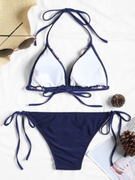 Endlessly daydream in this Tribal Style Triangle Bikini Set?. This purplish blue swim top features a colourful Aztec geometric pattern with hand macrame detail that dresses up your look, while the back and neck ties and adjustable triangle construction ensure that you get the perfect fit each time. Removeable foam cups and side tie bikini…