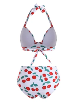 Show love for the wild animal patterns in this colorful leopard bathing suit that's fashioned with a cropped top accented with a knotted front and ruffle armholes. A high-waisted bottom is cut with front ruches for full tummy coverage. Style: Fashion Swimwear Type: Bikini Gender: For Women Material: Nylon,Spandex Bra Style: Padded Support Type: Wire Free Neckline: V Neck Pattern Type: Leopard…