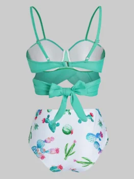 Style: Fashion Swimwear Type: Bikini Gender: For Women Material: Polyester,Polyurethane Bra Style: Padded Support Type: Underwire Neckline: Spaghetti Straps Pattern Type: Cactus Placement Print: No Waist: Natural Season: Summer Weight: 0.2700kg Package Contents: 1 x Bra 1 x Briefs