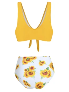 Style: Fashion Swimwear Type: Bikini Gender: For Women Material: Polyester,Spandex Bra Style: Padded Support Type: Wire Free Neckline: Spaghetti Straps Pattern Type: Sunflowers Embellishment: Zippers Waist: High Waisted Elasticity: Elastic Weight: 0.2400kg Package Contents: 1 x Top 1 x Briefs