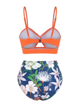 Swimwear Type: Bikini Gender: For Women Material: Polyamide,Polyester,Polyurethane Bra Style: Padded Support Type: Wire Free Neckline: Spaghetti Straps Pattern Type: Floral Embellishment: Hollow Out,Tie,Twist Waist: High Waisted Weight: 0.2600kg Package Contents: 1 x Top 1 x Briefs