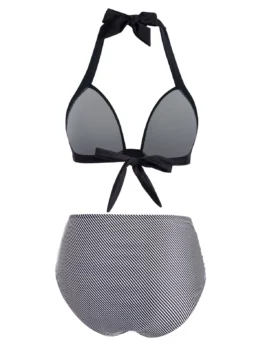 Style: Sexy Swimwear Type: Bikini Gender: For Women Material: Polyester,Spandex Bra Style: Push Up Support Type: Wire Free Neckline: Halter Pattern Type: Striped Embellishment: Twist Waist: High Waisted Elasticity: Elastic Weight: 0.2400kg Package Contents: 1 x Bra 1 x Briefs