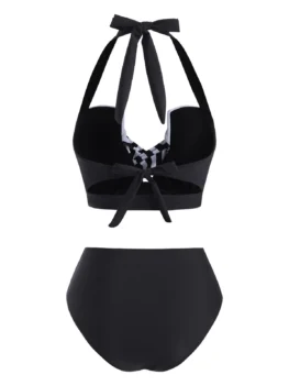 Be confident to show your hourglass figure with this alluring bikini swimwear. It flatters with an alluring plunging front which is created by the self-tie halter straps. The ruched accent adds so much style. And the high waist enables you to cover up your stomach area, but still, pull off a very chic look. …