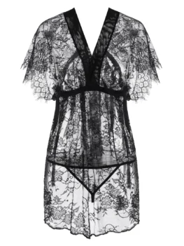Style: Sexy Material: Polyamide,Polyurethane Neckline: V Neck Pattern Type: Solid Embellishment: Lace Weight: 0.2350kg Package Contents: 1 x Robe 1 x Belt