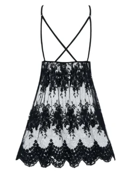 Scalloped Lace Mesh Lingerie Robe Babydoll Set