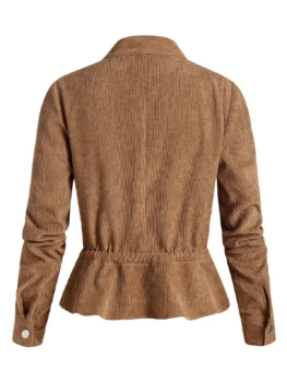 Style: Fashion Clothes Type: Jackets Material: Polyester Fabric Type: Corduroy Type: High Waist Length: Regular Sleeve Length: Full Collar: Collarless Pattern Type: Solid Embellishment: Lace up Season: Fall Weight: 0.3700kg Package Contents: 1 x Jacket