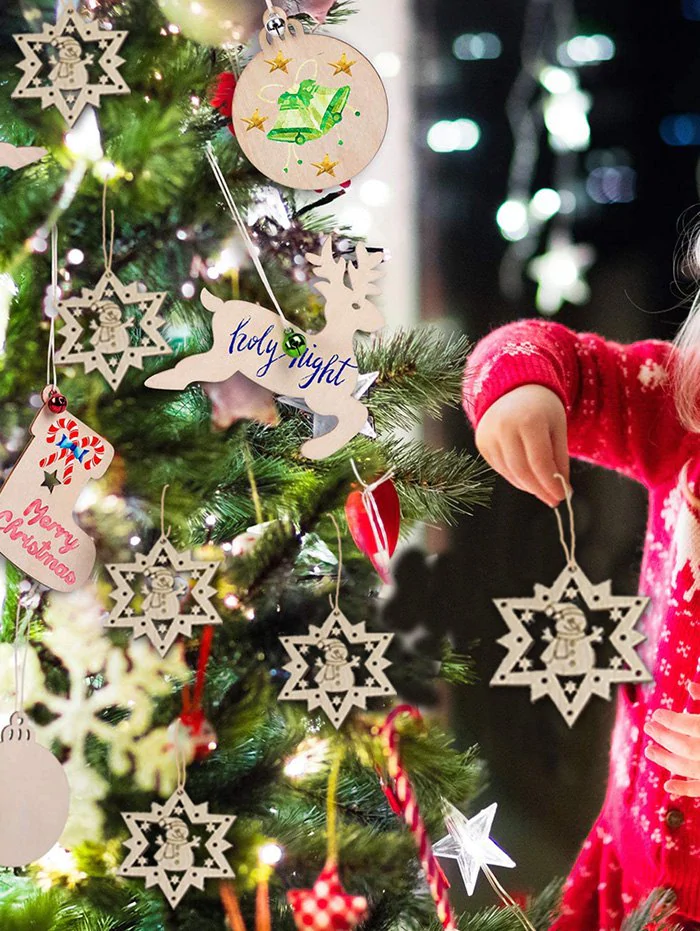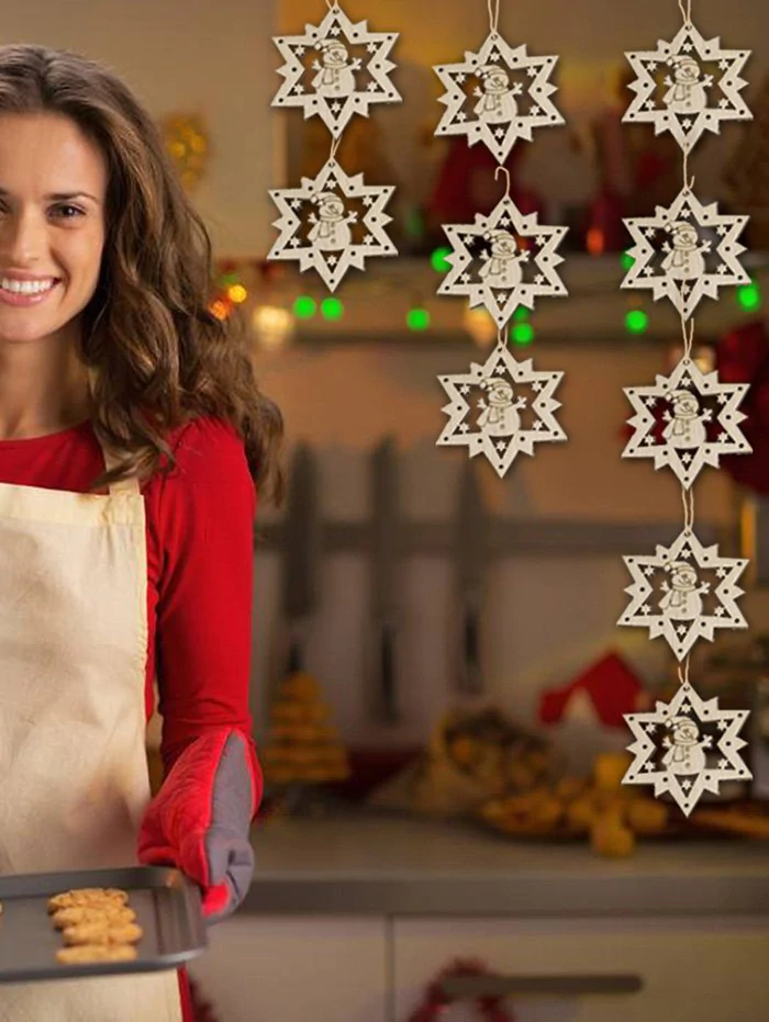 2 reviews for 10 Pcs Christmas Tree Hollow Snowman Pattern Wooden Hanging Deco