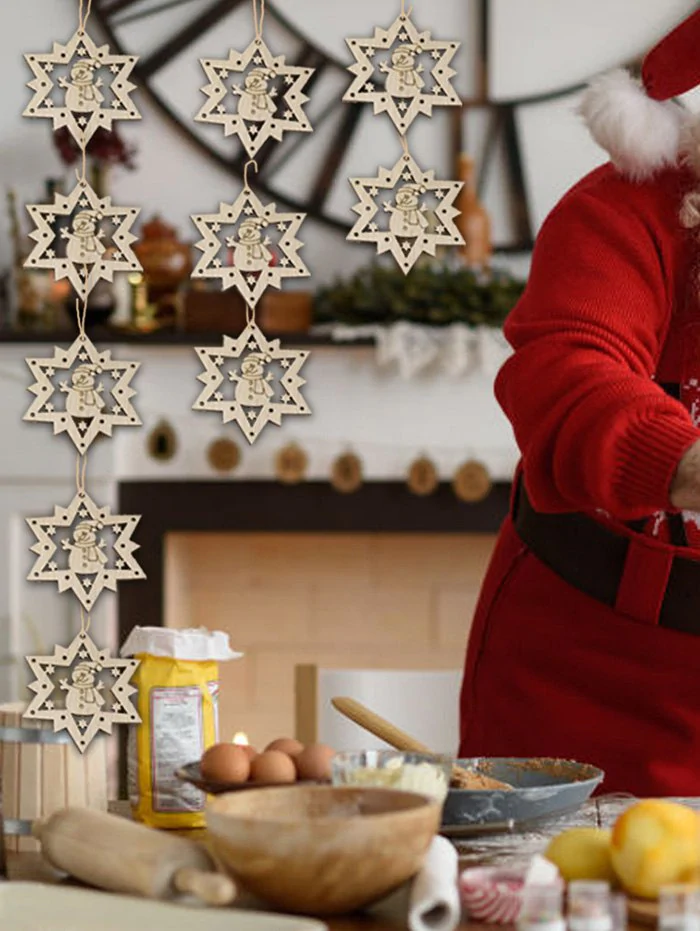 10 Pcs Christmas Tree Hollow Snowman Pattern Wooden Hanging Deco