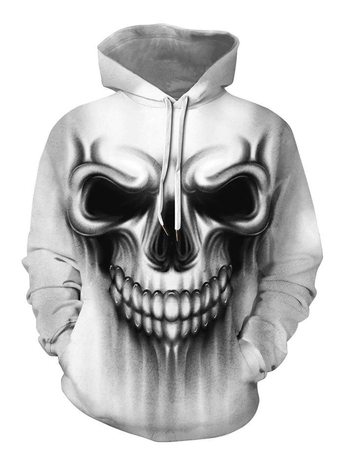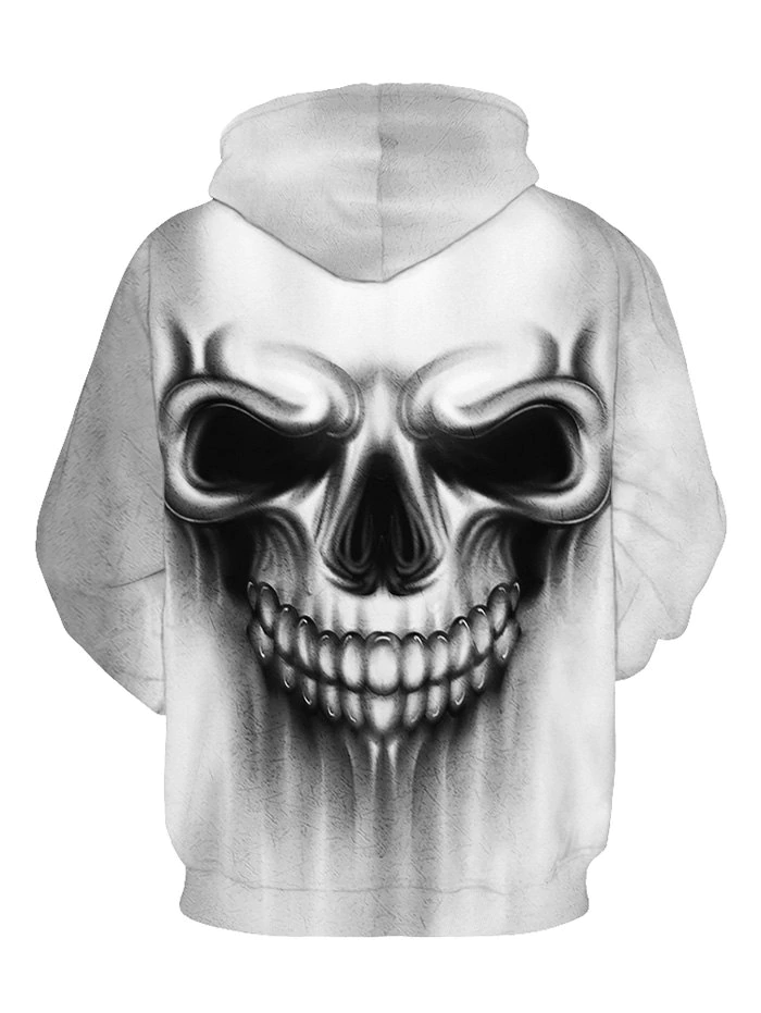 3D Skull Pattern Front Pocket Drawstring Hoodie