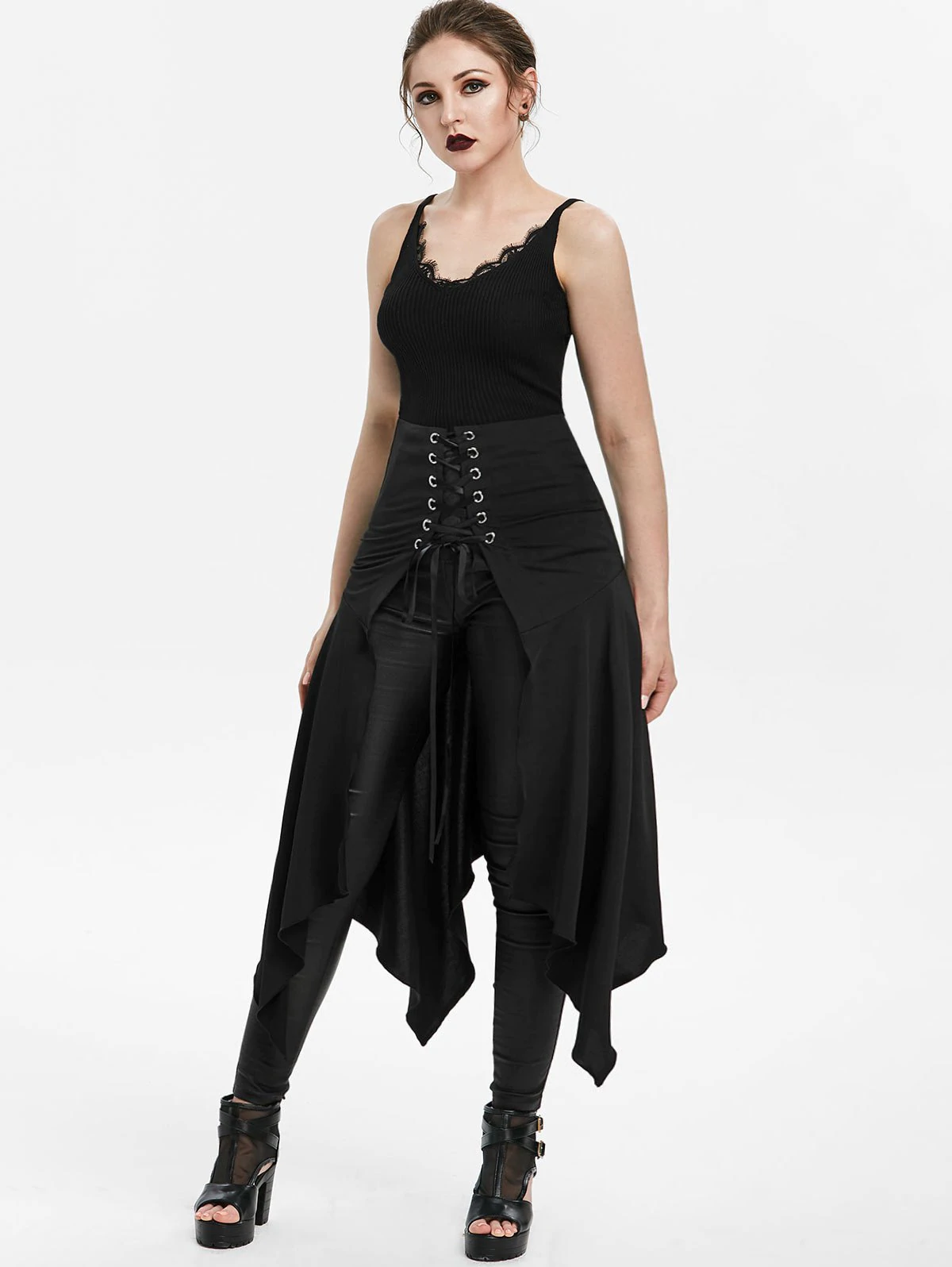 Asymmetric Lace-up Slit Front Skirt