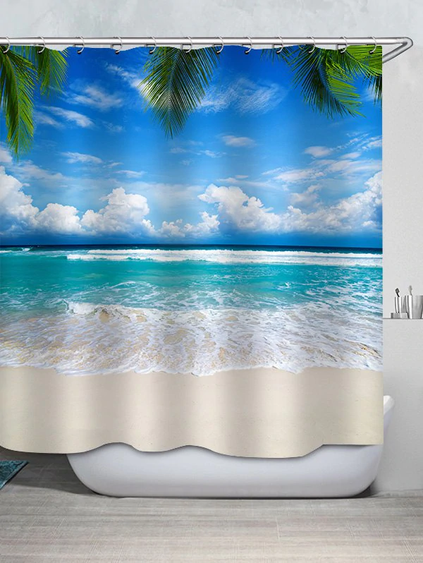 Beach Leaves Pattern Waterproof Bathroom Shower Curtain