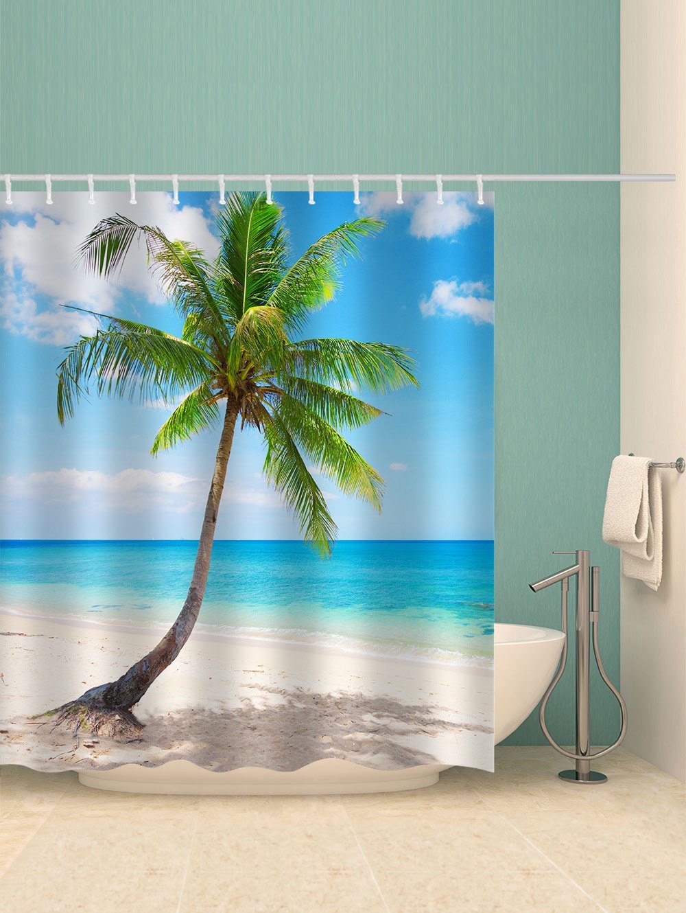 Beach Palm Tree Pattern Waterproof Bathroom Shower Curtain