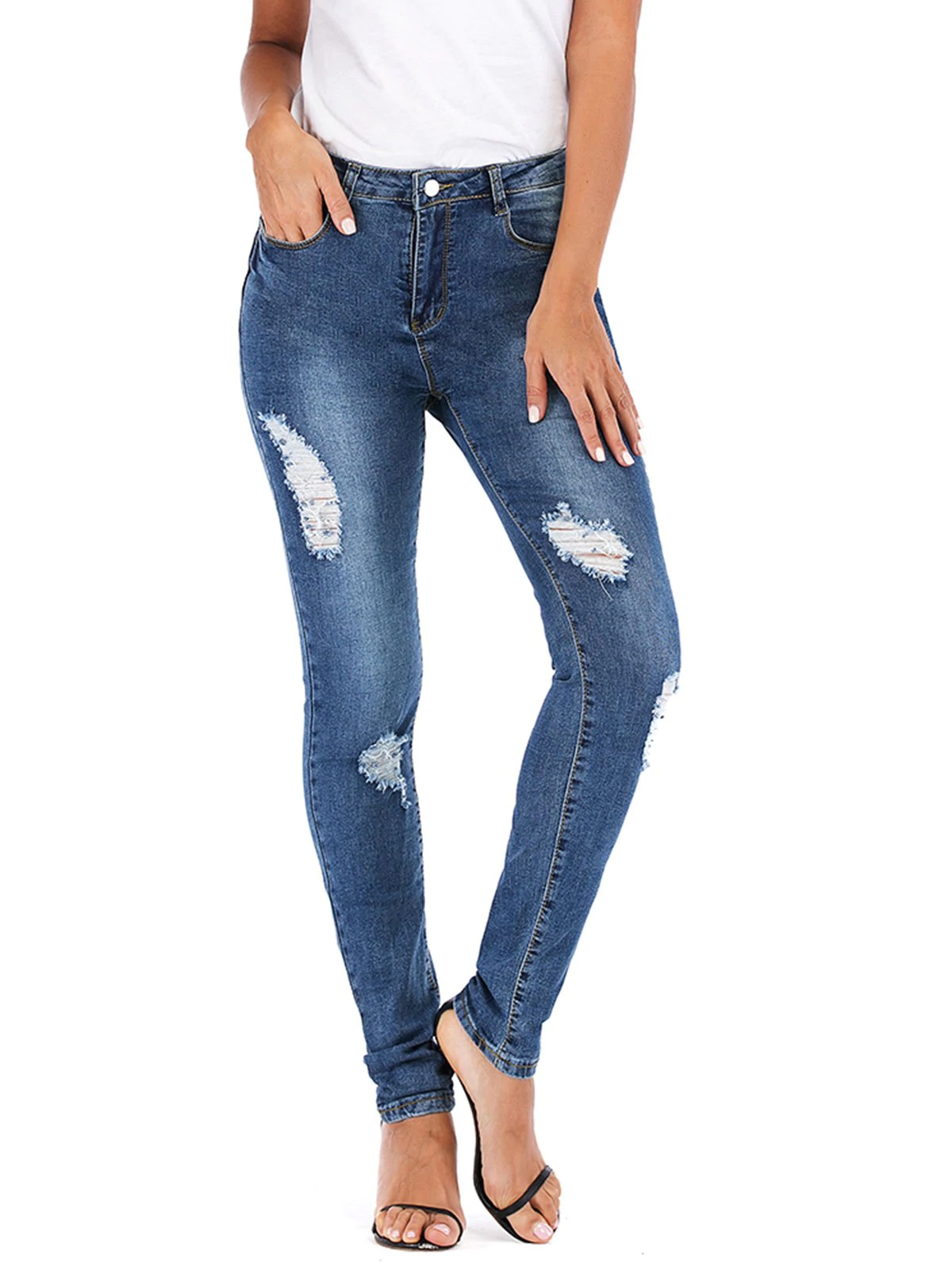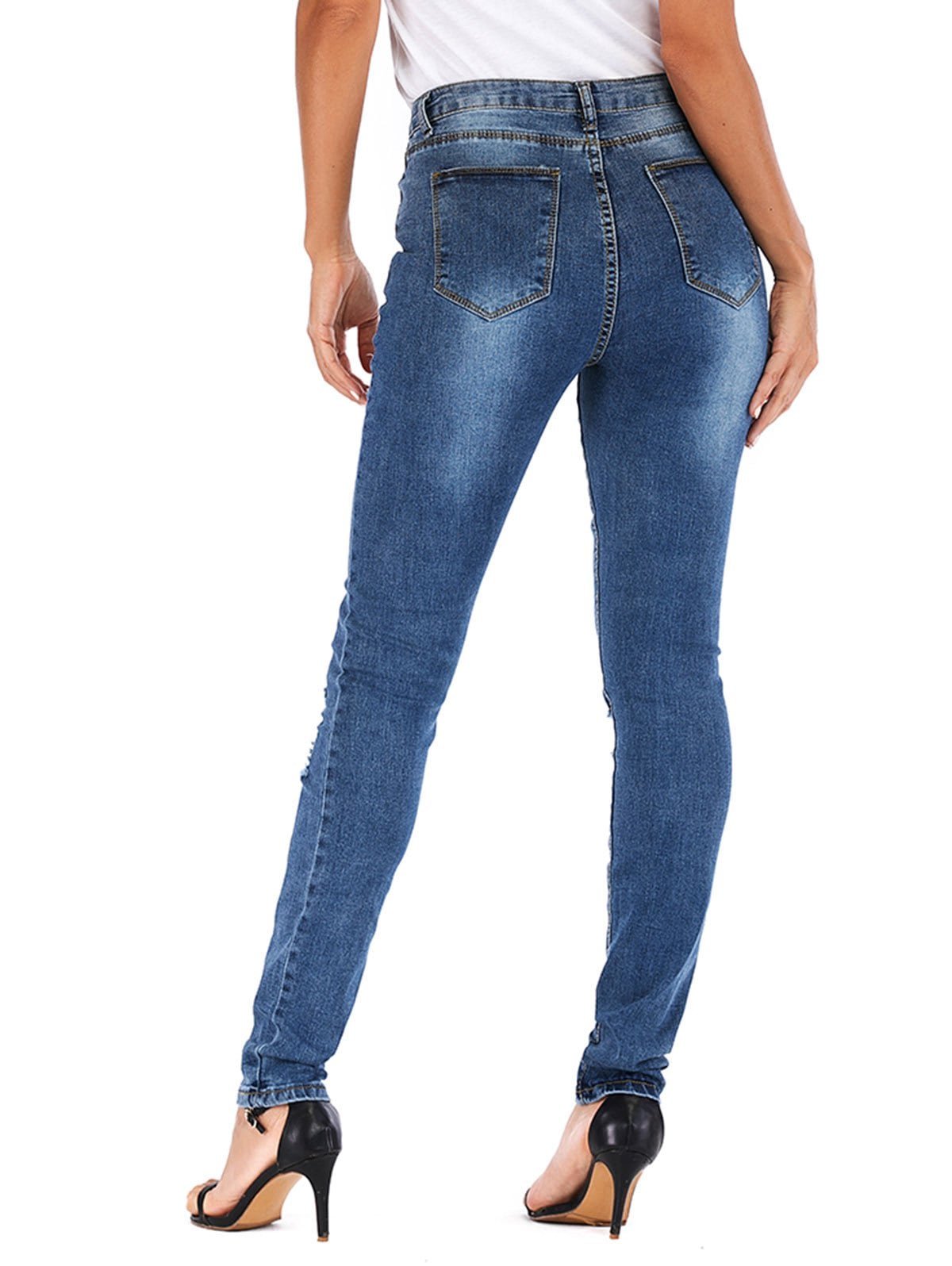 Bleach Wash High Waisted Distressed Skinny Jeans